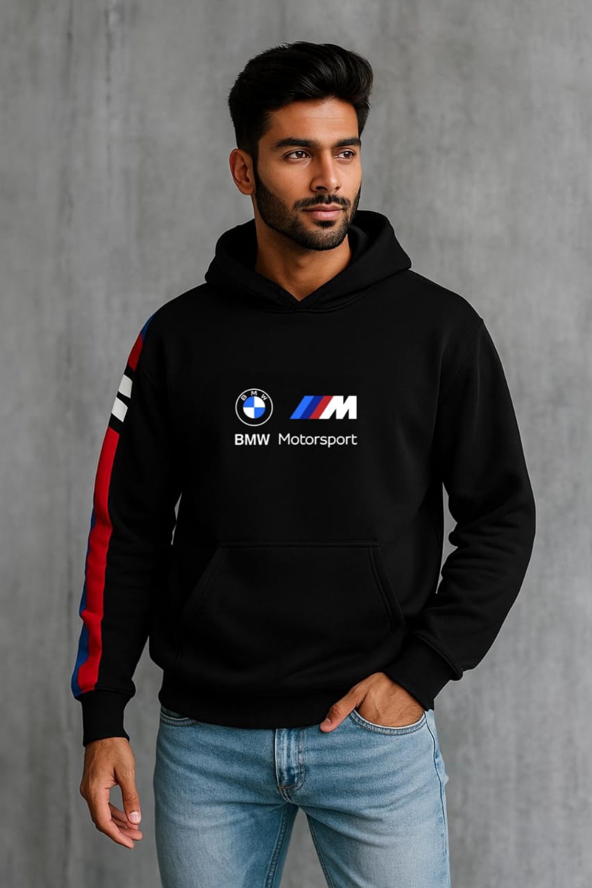 The BMW Motorsport oversized hoodie in black is built for lovers of speed, design, and bold streetwear culture. Featuring a dynamic front logo and motorsport-inspired aesthetic, it blends performance with comfort.
